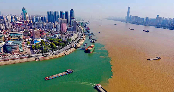 兩江東去,黃綠涇渭分明,波瀾壯闊。