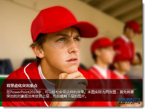 如下面的這個背景虛化,利用PowerPoint的背景刪除工具就可以完成: