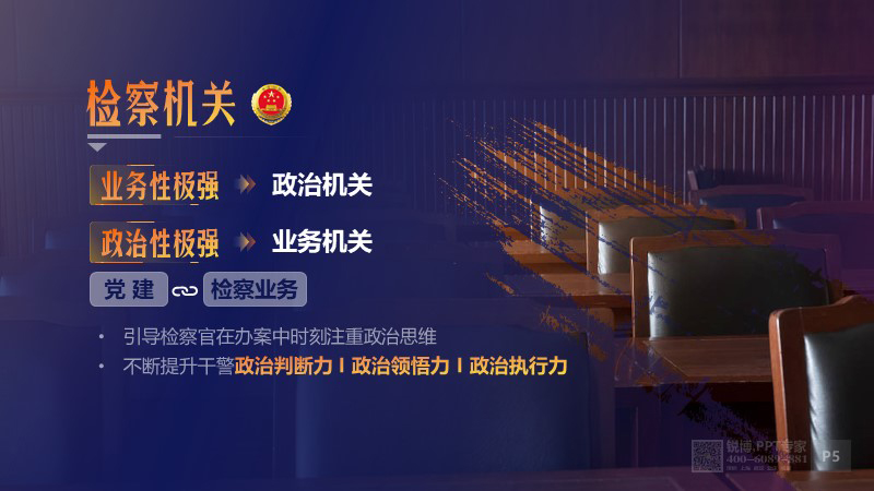 場景化圖片為輔突出檢察院莊嚴肅穆的感覺,運用文字顏色的對比和大小對比來突出核心內容,在文字上進行大量提煉和刪減,