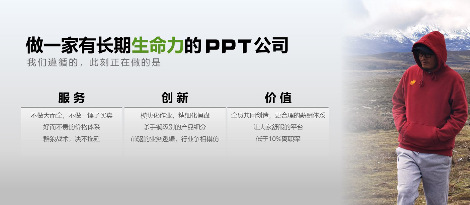 5.  個性化:專業平面設計師量身制作PPT,美觀、大方、創新、適合,帶觀眾進入美妙的視覺意境,并準確體現企業文化內涵。