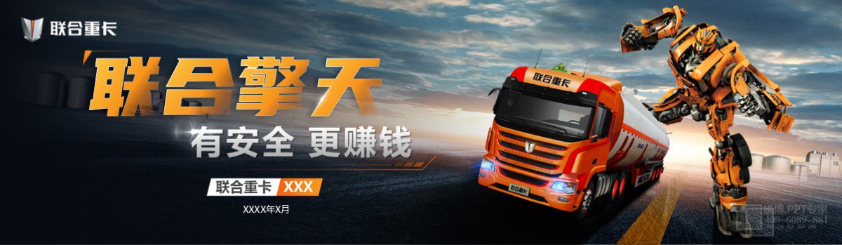 整體以橙色為主色調,充滿活力與警示感,凸顯聯合重卡的醒目與安全特質。