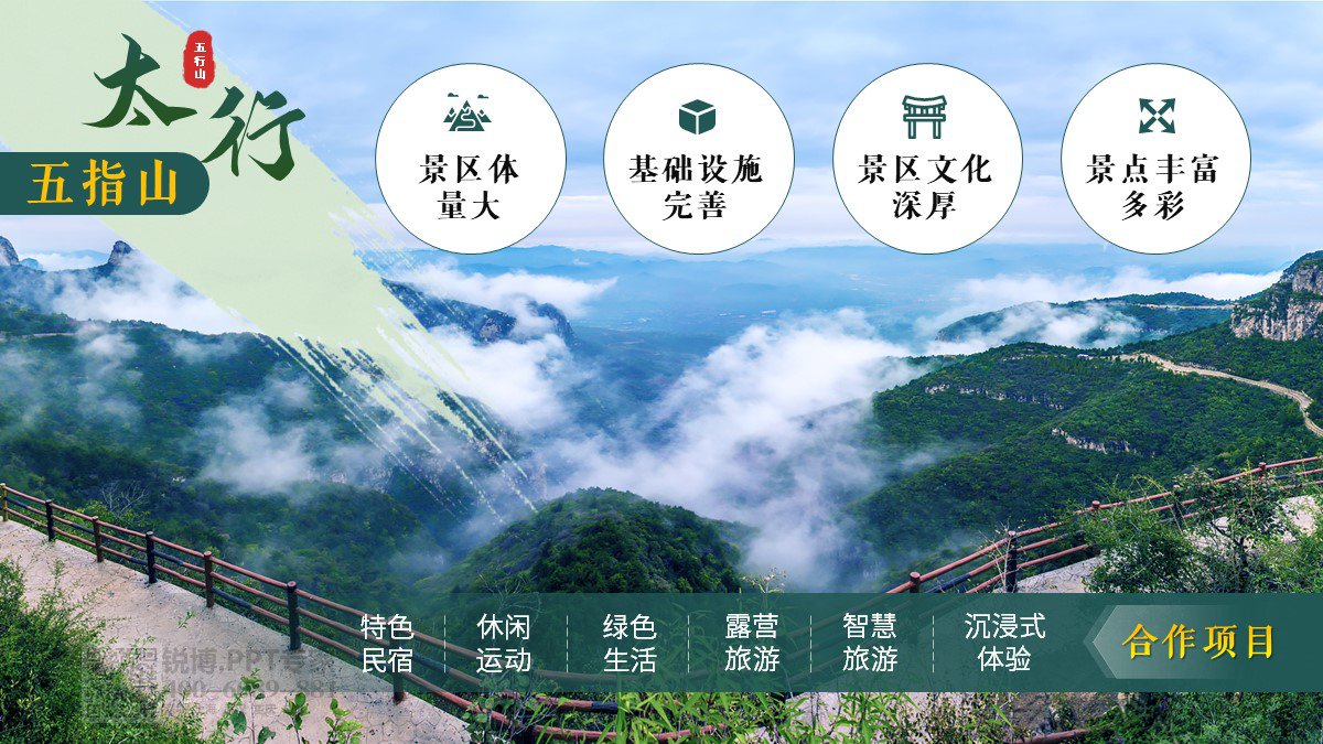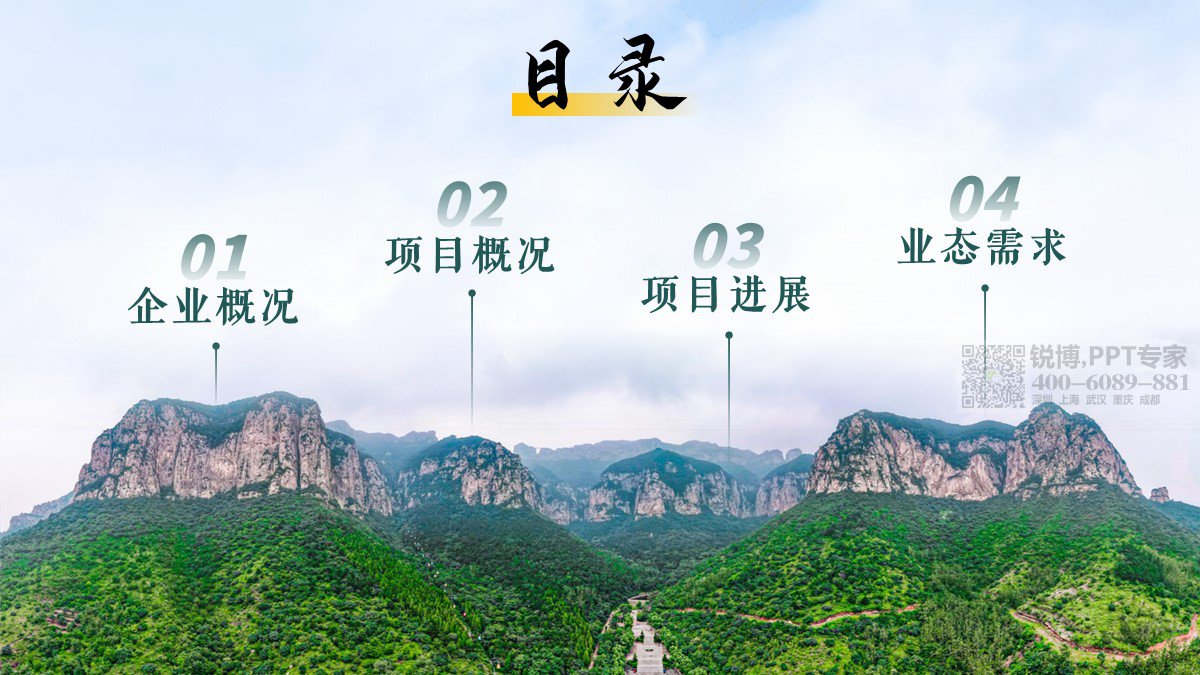 字體選用規整、易讀的風格,加入少量國風元素,增強視覺層次感,整體設計凸顯太行五指山的自然風光與企業項目特色。