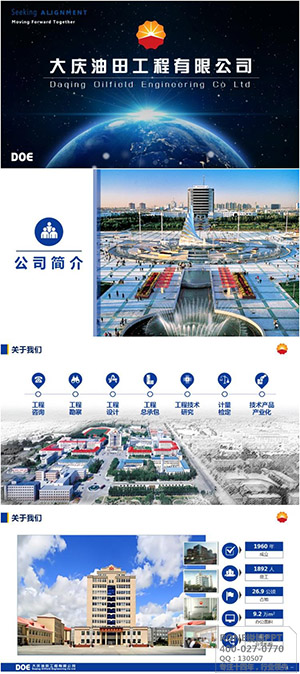 大慶油田工程有限公司是以石油、天然氣的勘探、開發(fā)為主營業(yè)務(wù)的國家控股特大型企業(yè)。銳博根據(jù)對PPT整個結(jié)構(gòu)的分析,對其行業(yè)特性進(jìn)行詳細(xì)分析做出一套幻燈片演示方案,整體以藍(lán)色為主色調(diào),給人一種大氣沉穩(wěn)的感覺。