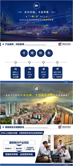寧陽經(jīng)濟開發(fā)區(qū)坐落于寧陽縣磁窯,是省級經(jīng)濟開發(fā)區(qū)。銳博設計利用合適的結構框架把重點文字呈現(xiàn)出來,條理清晰,再加上圖片的襯托,更能體現(xiàn)出寧陽經(jīng)經(jīng)濟開發(fā)區(qū)模式的快速發(fā)展。