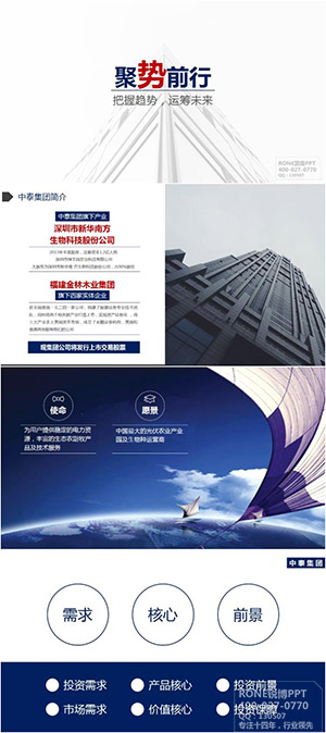 中泰集團是一家以房地產開發為主導,多產業并行的集團化公司。業務布局房地產、物業經營與服務、海外電信運營及移動互聯網、大數據、物聯網、休閑娛樂、健康管理及金融服務等八大板塊 。銳博設計在顏色搭配上以藍色為主色調,以紅色為輔,冷暖結合,讓人眼前一亮;在版式上,框架結構條理清晰,讓觀看者一目了然。再結合圖片,畫面感極強,給人一種視覺上的沖擊。