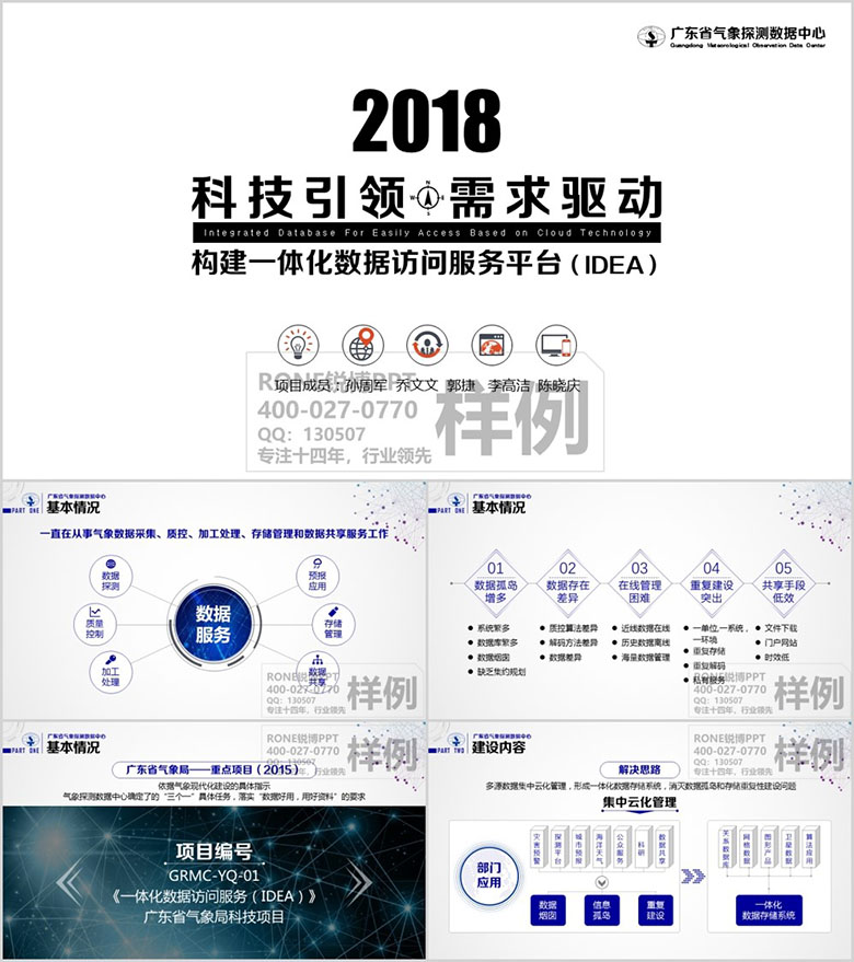 因為是氣象中心,所以PPT整體色調選用的天空藍來突顯主題,整個PPT主要講的是大數據,強調科技感,因此設計中大量的使用了相關的圖片、圖標和線條等科技元素。