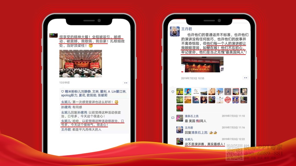 — 說明:以紅色為主色深配合淡黃或金黃色的文字,使整個的ppt具有穿透力,對視覺的影響力也最大,是最引人注目的色彩,深紅色色彩的采用規(guī)避了某些會容易讓人感覺過于跳躍的因素,清晰的結(jié)構(gòu)展現(xiàn)了文案的邏輯性。