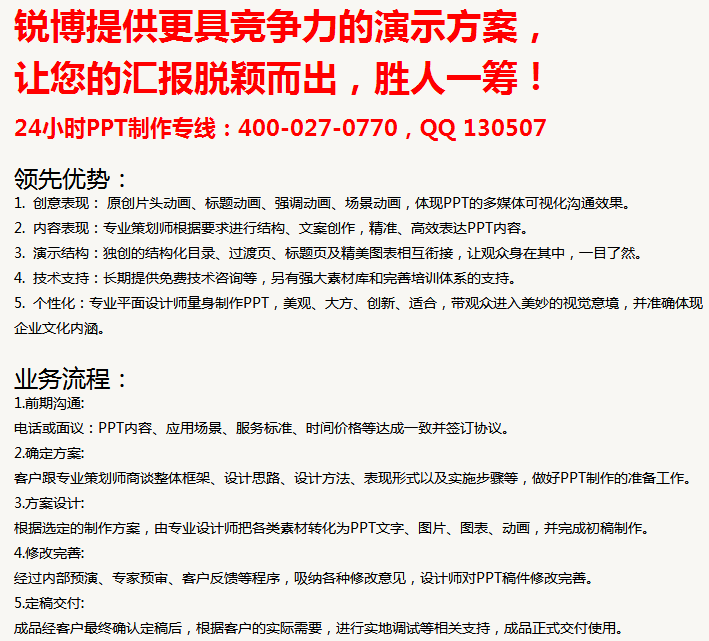 TAG: 深圳PPT制作公司 廣州PPT制作公司 南京PPT制作公司 長沙PPT制作公司 南昌PPT制作公司 合肥PPT制作公司 專門制作PPT 專門設(shè)計(jì)幻燈片 幻燈片制作公司