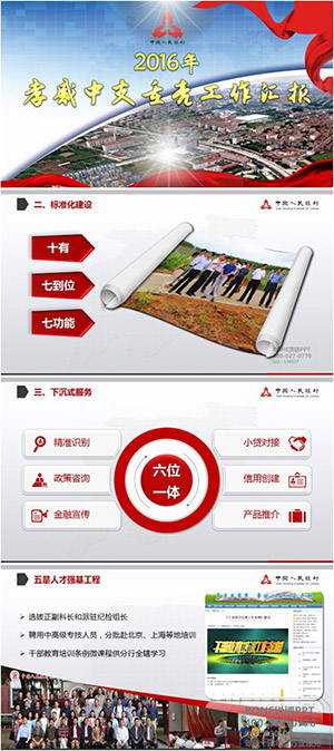 此版主要以紅色為主色調,給觀看者醒目的觀看效果。內容框架明了,突出重點,體現了人民銀行的建設的標準和服務的態度。