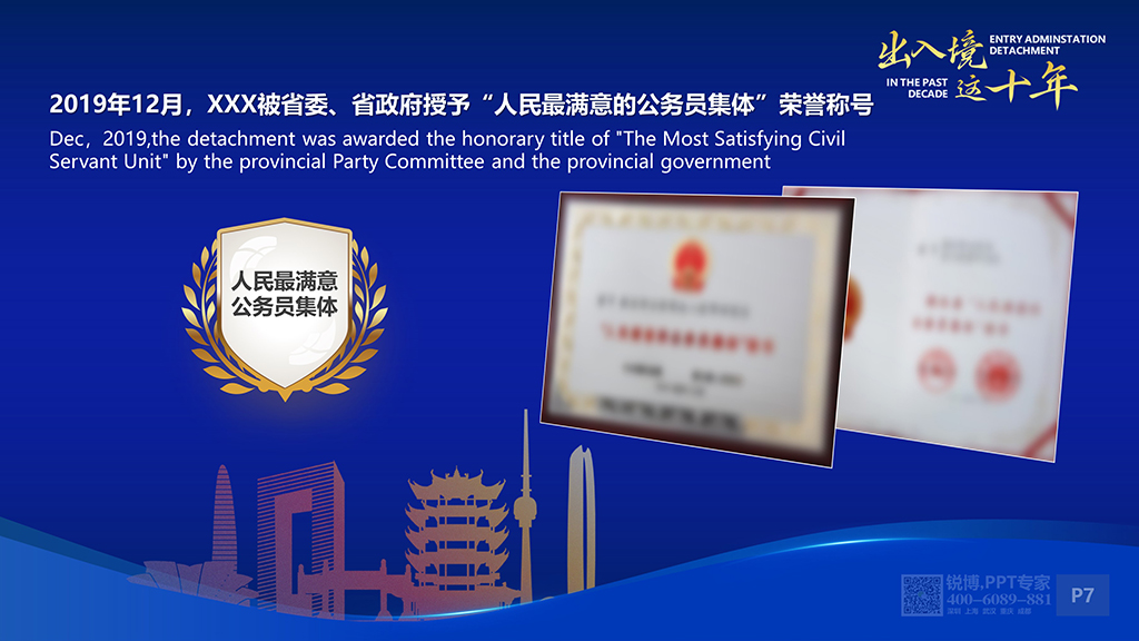 該ppt整體視覺穩(wěn)重大氣、簡潔明快,頁面實用美觀、介紹齊全,出入境十年間的工作及服務(wù)在此體現(xiàn)得美倫美幻。
