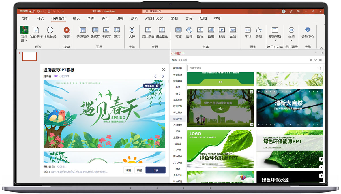 安裝后,啟動(dòng)Office(WPS),在菜單欄,小白PPT助手將顯示出來,點(diǎn)擊即可應(yīng)用